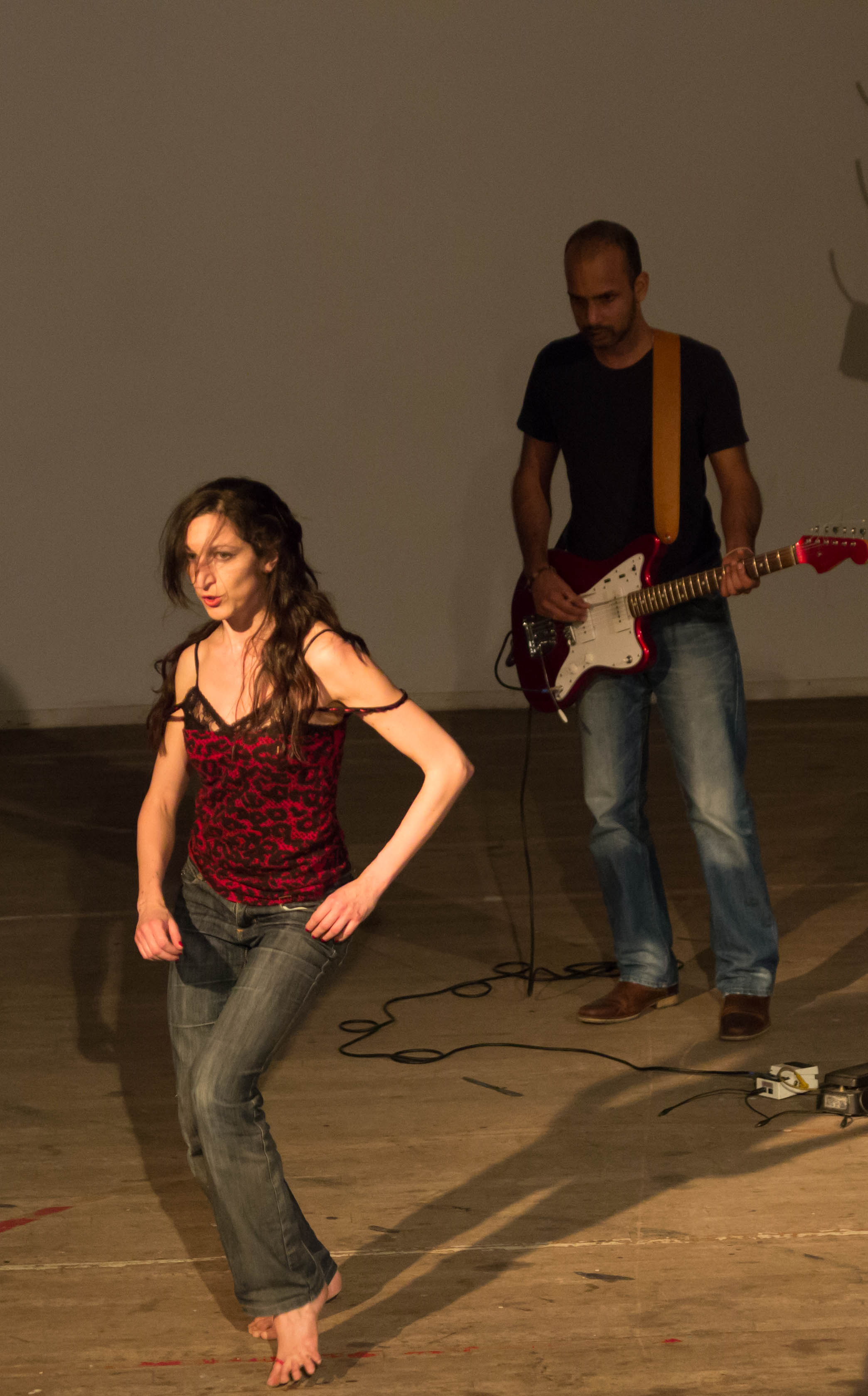 From the music and dance underground of Amsterdam arises El Otro the duo of dancer Manuela Lucia Tessi and guitar player Arvind Ganga. Two unique individuals mix the mood of the space and the energy of the audience with their own temperament and intensity and express that through instantly composed music and dance. A journey to their inner souths, where the sun is blistering hot and the loins call the shots, transforming a dusty sleepy town into a desperado inferno in a matter of seconds. They love to be in between and close to the public, breaking the wall between audience and performer. They like the challenge of non theatrical spaces, like galleries, foyers, cafes, living room resembling locations, in which the boundaries between the audience and the performance space are blurred, and the audience not necessarily seated with one front. They test how the location of performance space influences the attention and behaviour of the audience and therefore responding in their movement and sound material.